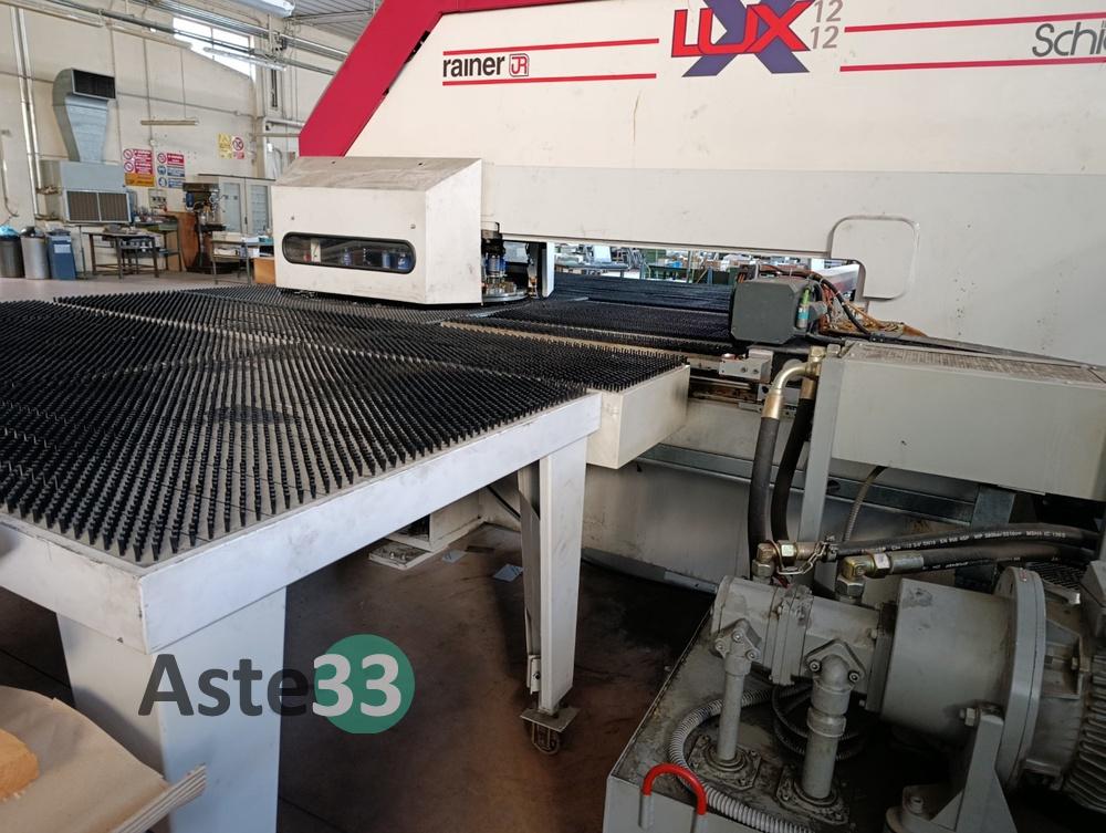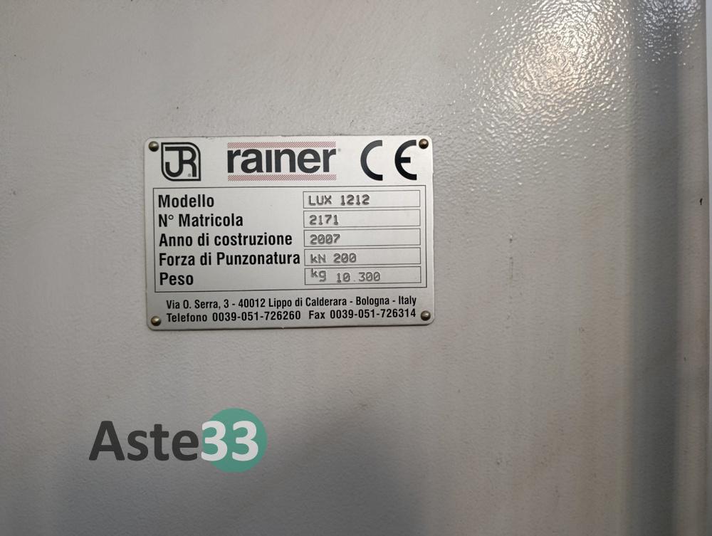 Punzonatrice RAINER (Schiavi) modello LUX 1212 matricola 2171 anno 2007, con posizionatori, quadro di comando, quadro elettrico, banchi per carico e scarico, sistema di protezione operatore con fotocellule e griglie metalliche;