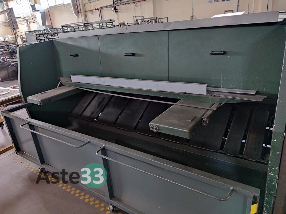 Cesoia a ghigliottina SCHIAVI BRG 3100 A6, con carrello per scarico lamiere.