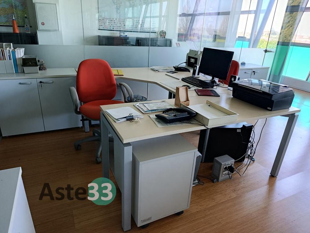 Arredamento per ufficio con n. 2 scrivanie, mobili bassi, poltroncine, informatica, fax Xerox ed affrancatrice
