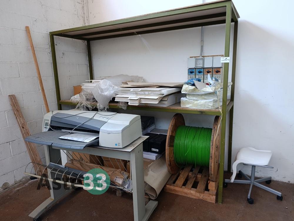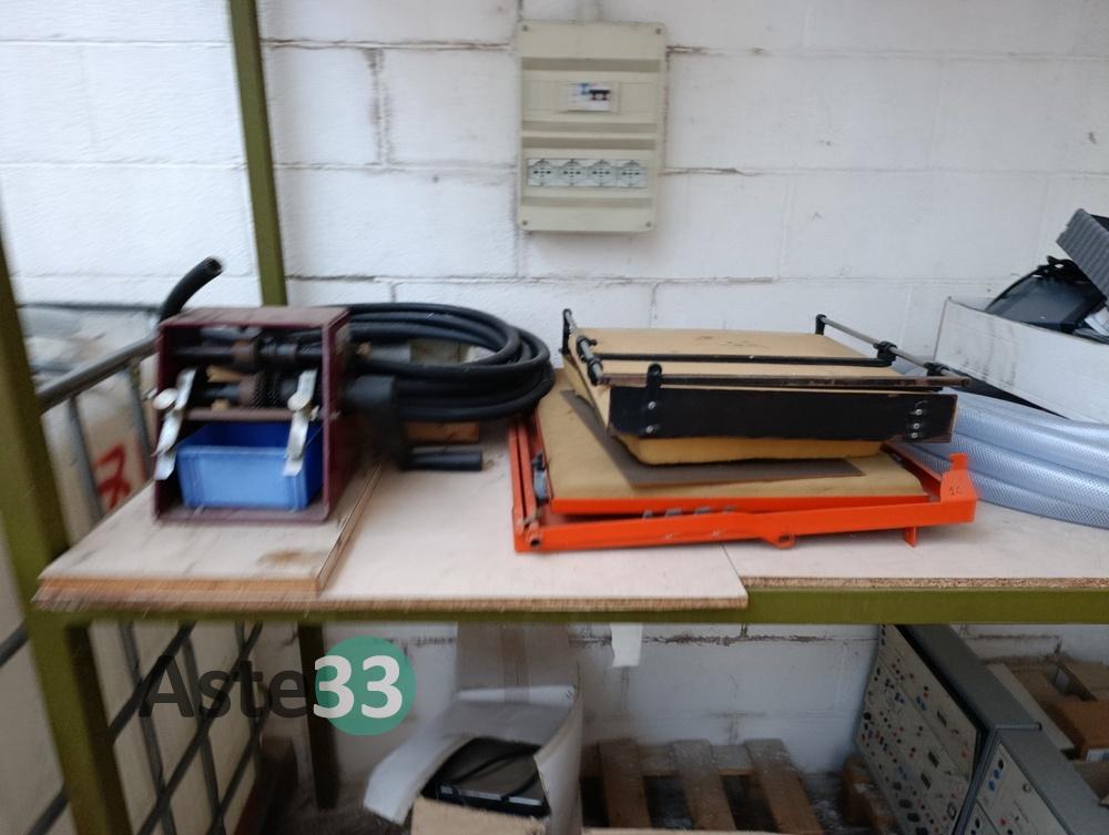 Transpallet manuale, bobina di cavo di rete, scaffalature metalliche ed attrezzature in sorte
