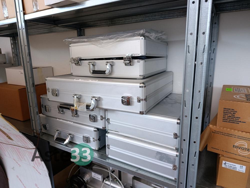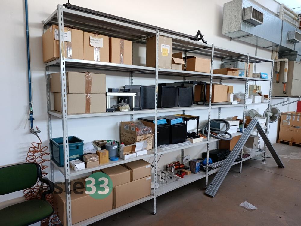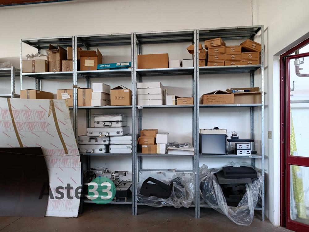 Oltre 13 metri lineari di scaffalature metalliche leggere, apparecchiatura f-tc-f (trasferimento di calore per irraggiamento), vari prototipi e n.2 ventole