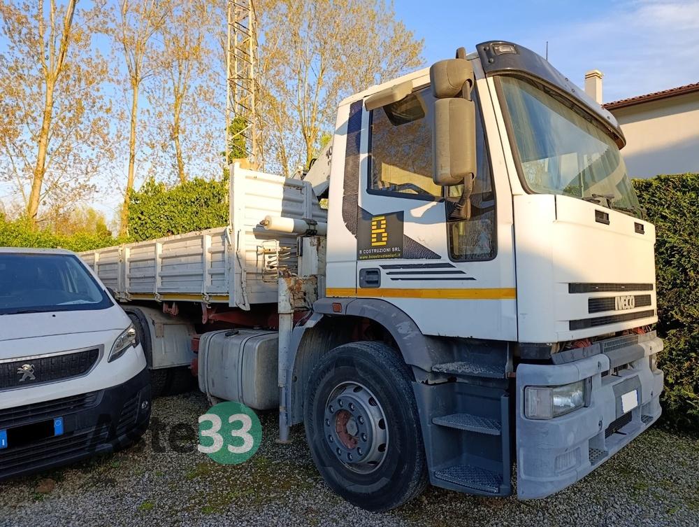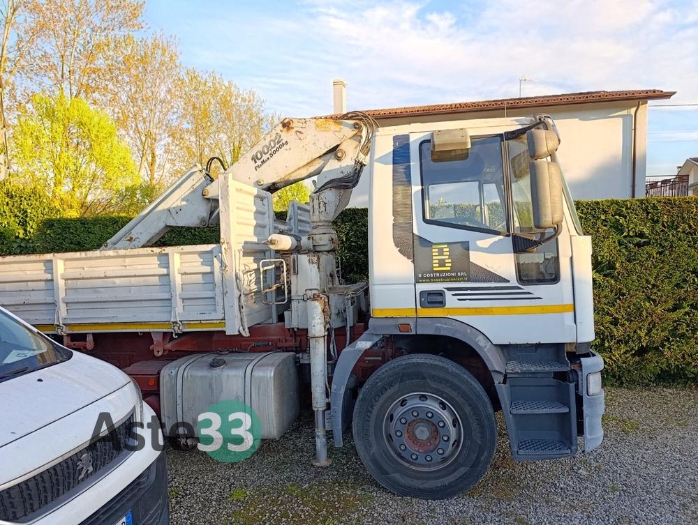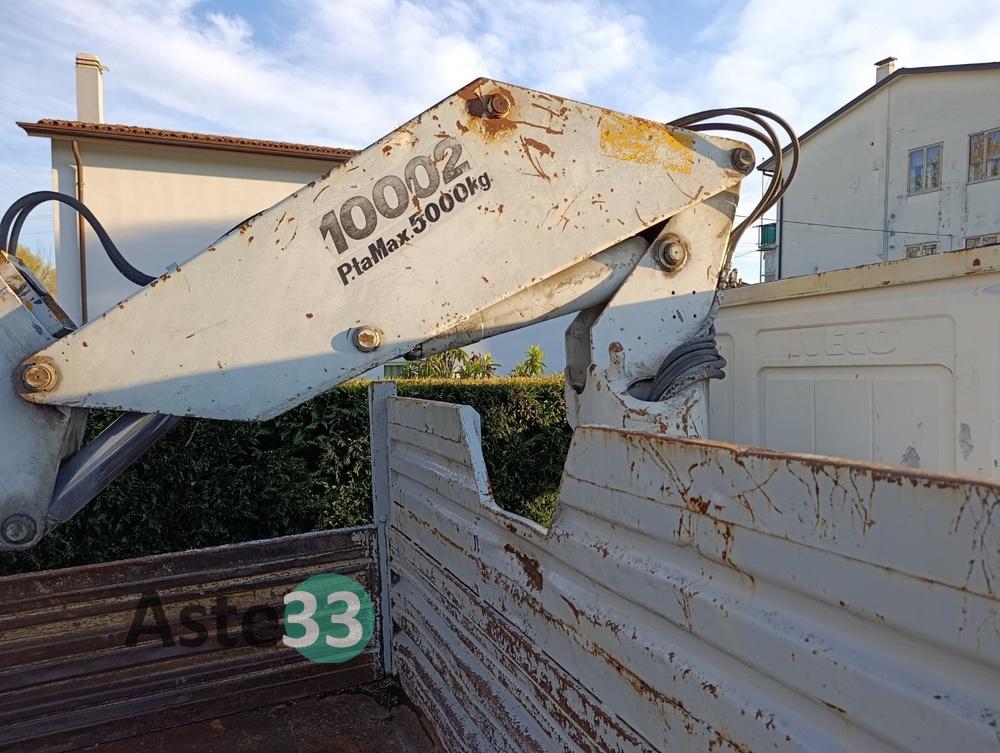Autocarro Iveco con cassone ribaltabile trilaterale e gru marca PM tipo 10002