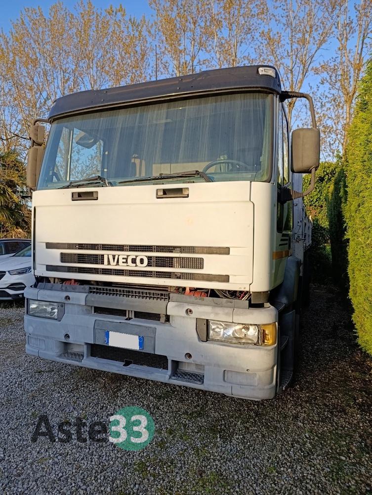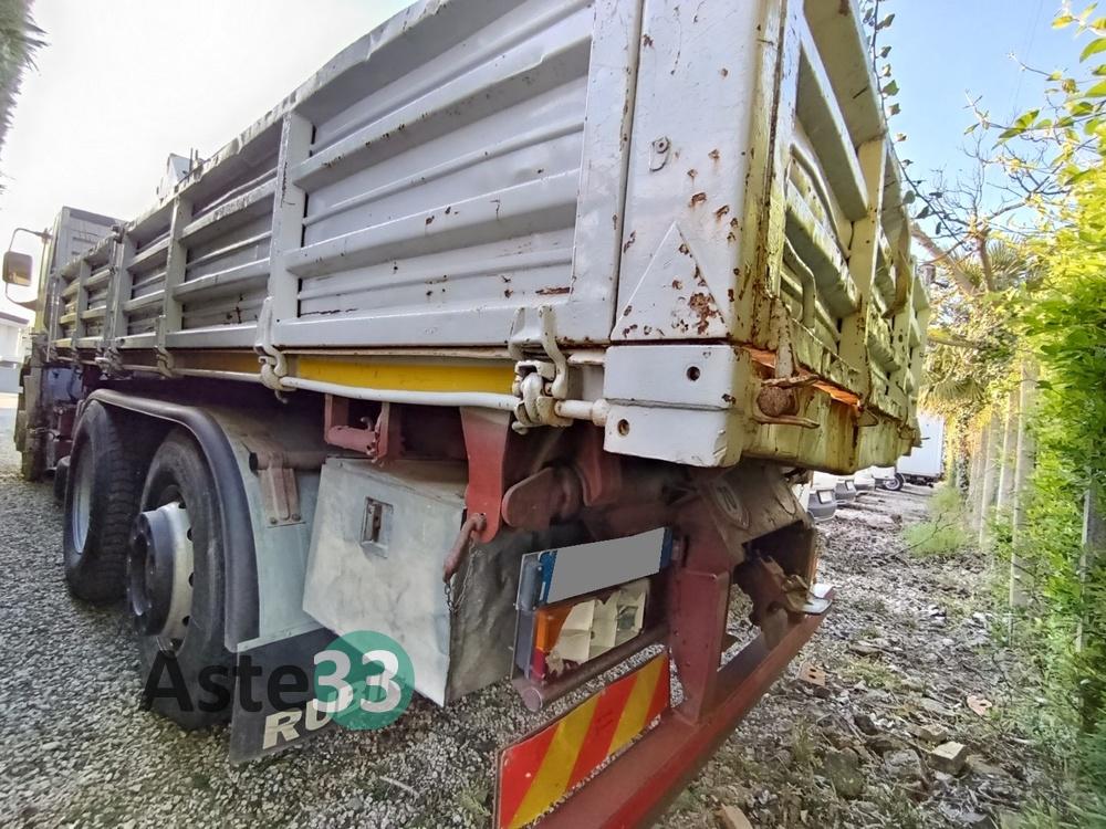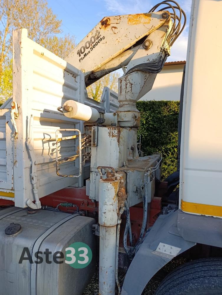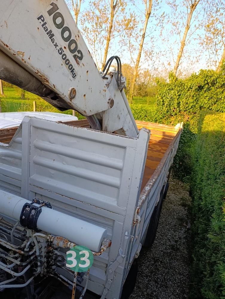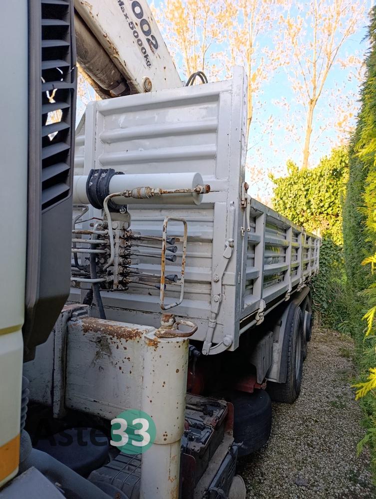 Autocarro per trasporto di cose, con cassone ribaltabile trilaterale e gru dietro la cabina, marca IVECO 400E30, targato BY114GK, anno di prima immatricolazione 1993, potenza kW 221, alimentazione a gasolio, cilindrata cm³ 9.500, lunghezza 8,450 m, larghezza 2,500 m. portata kg. 14.500, tipo di cambio meccanico. Gru dietro la cabina marca PM tipo 10002 matricola 21134. Ultima revisione regolare effettuata in data 16.03.2024 con rilevati in sede di revisione km. 738.050.