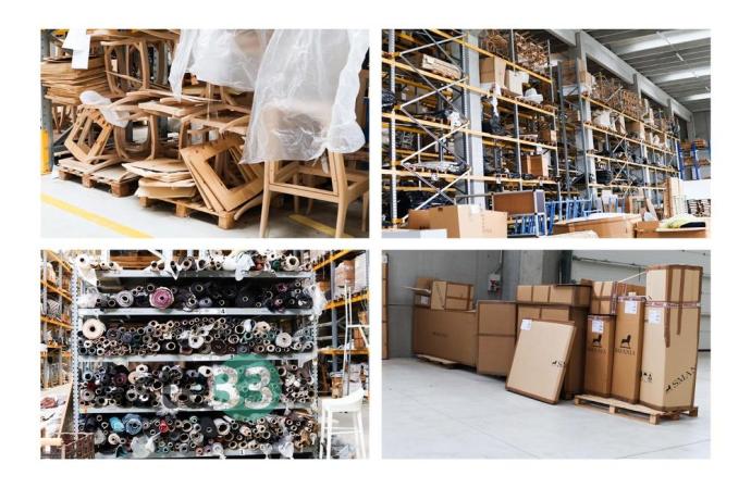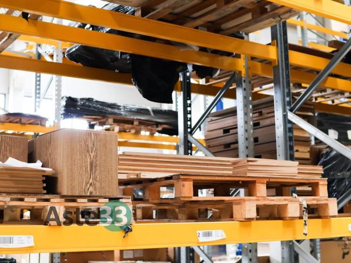 Giacenze di arredamento ed accessori prodotti finiti, arredamento semilavorato, materiale semilavorato, giacenze di materie prime, minuteria, ferramenta, tessuti e pellame in sorte