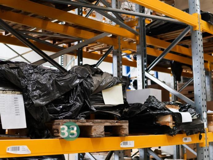 Giacenze di materiale plastico, materiale finito, materozzi, contenitori con materie plastiche