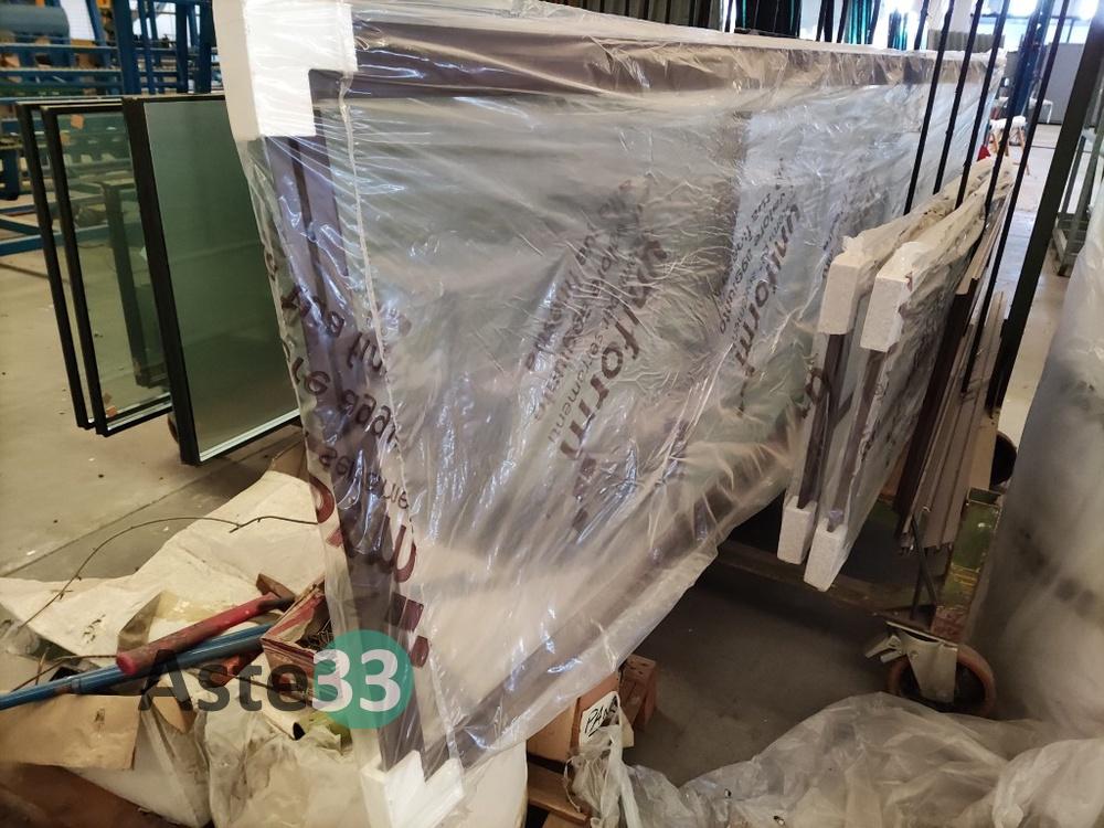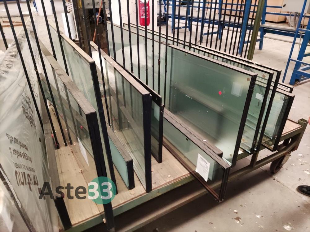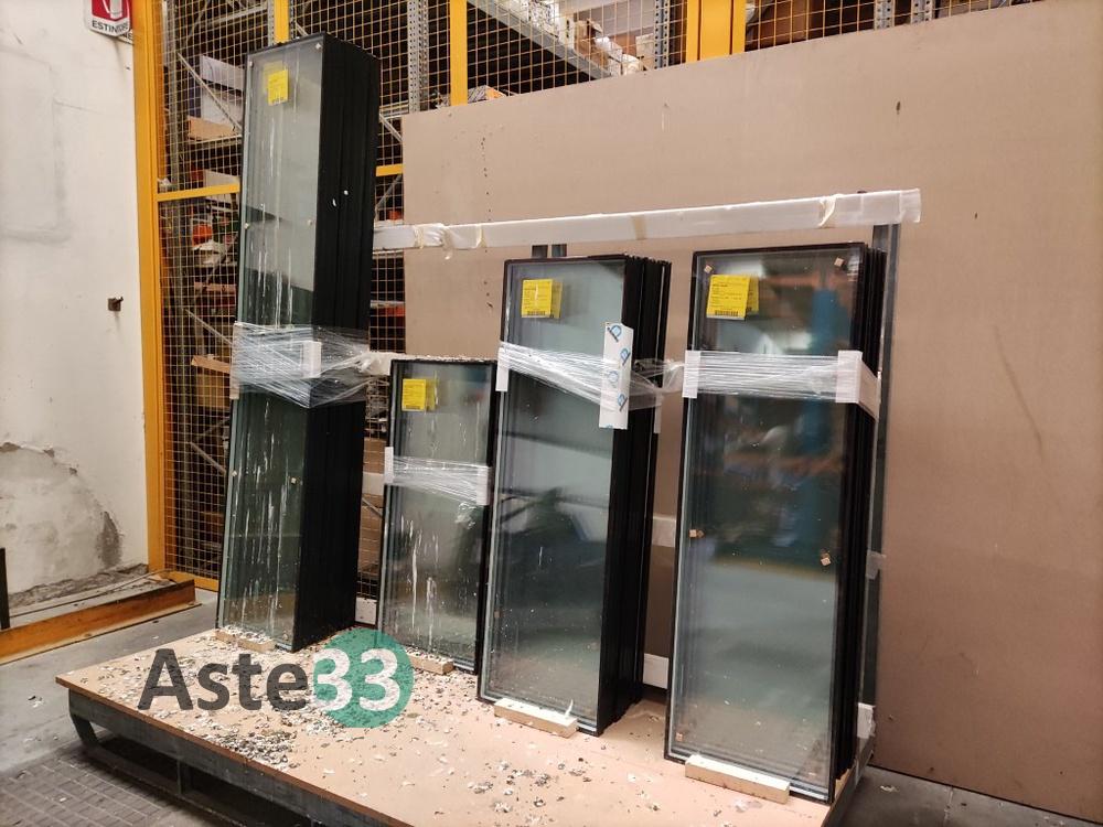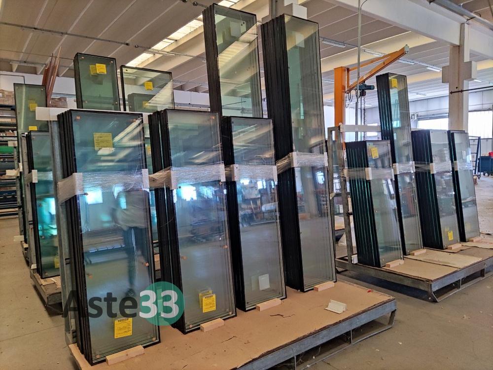Oltre 200 vetri per finestre a doppio e triplo vetro, strutture in alluminio, cassonetti semilavorati, n. 47 tavole in legno ed informatica
