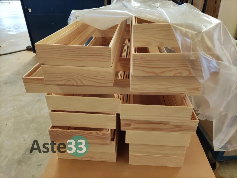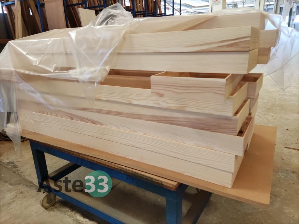 N. 37 cassonetti in legno semilavorato, con relativo coperchio;