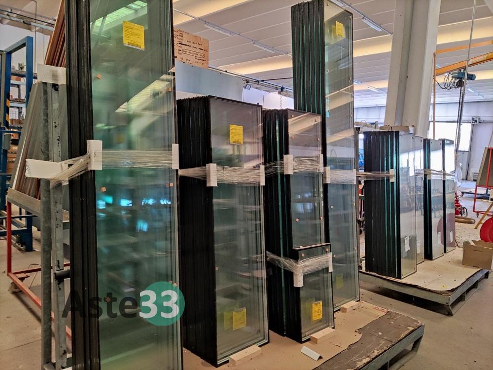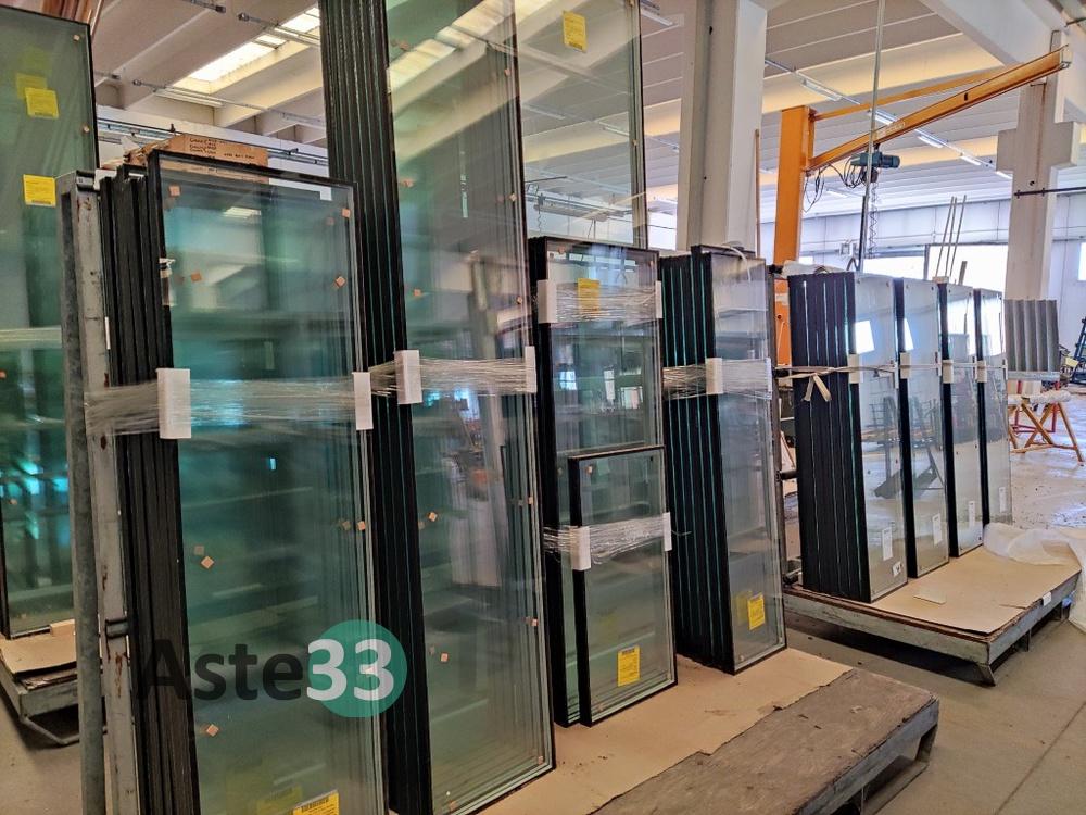 N. 210 circa di vetri per finestre, a doppio e triplo vetro, in sorte nei modelli e misure;