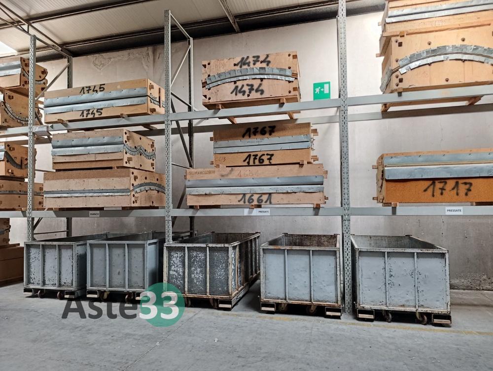 N.64 stampi per la pressatura del legno curvato, varie dimensioni;N.127 stampi per la pressatura del legno curvato, varie dimensioni;N.55 stampi per la pressatura del legno curvato, varie dimensioni;N.55 stampi per la pressatura del legno curvato, varie dimensioni;N.18 stampi per la pressatura del legno curvato, varie dimensioni;Varie sagome e vari stampi in...