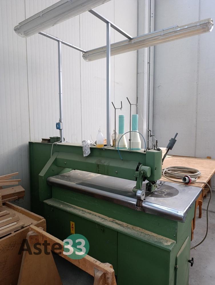 Giuntatrice a filo per impiallacciatura, marca KUPER;Sega a nastro, marca OFF. C.M.L. SAS, modello SC800, n. seriale 6705, anno 1997;Troncatrice circolare a pendolo, marca PEGIC, modello GPS, matricola 3, anno 2006, su ruote.