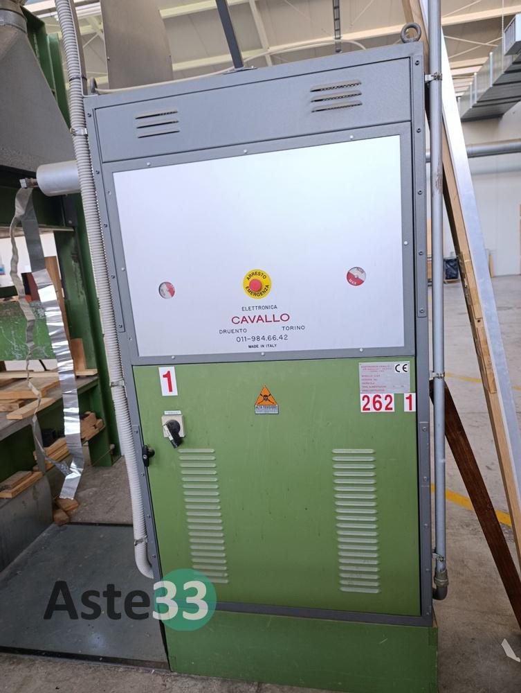 Pressa per curvati marca DI EFFE MACCHINE, modello PF 2500/100, matricola 015/01, anno 2001, con pistoni laterali e generatore ad alta frequenza per riscaldamento rapido ELETTRONICA CAVALLO, modello G.A.F. 30, potenza 30kW, matricola 1634, anno 2001 (263).