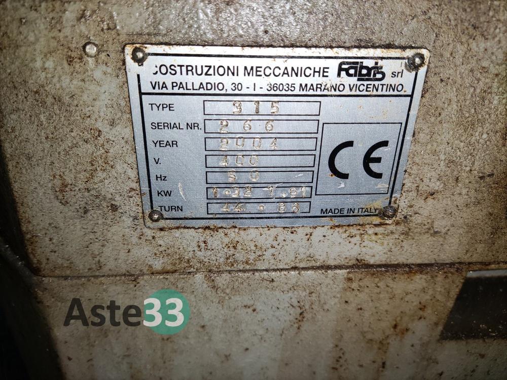 Troncatrice FABRIS, modello 315, n. seriale 266, anno 2004, con rulli per carico e scarico;