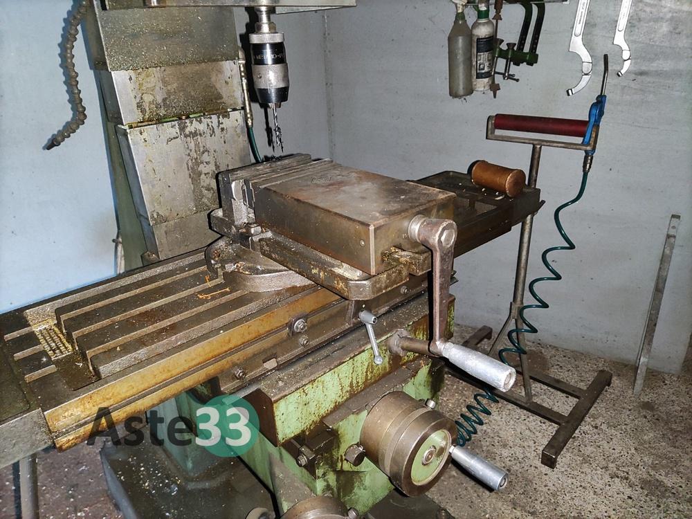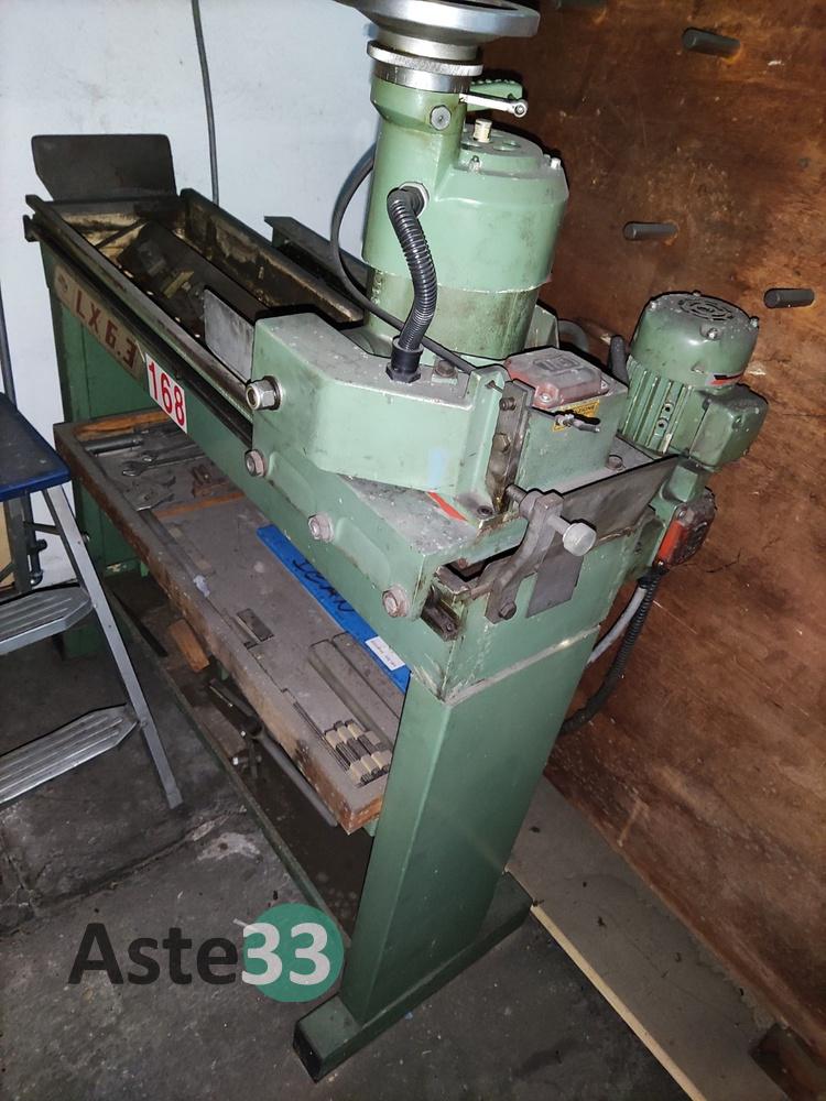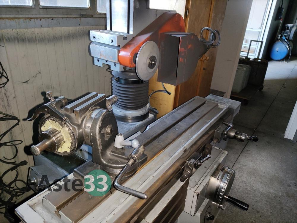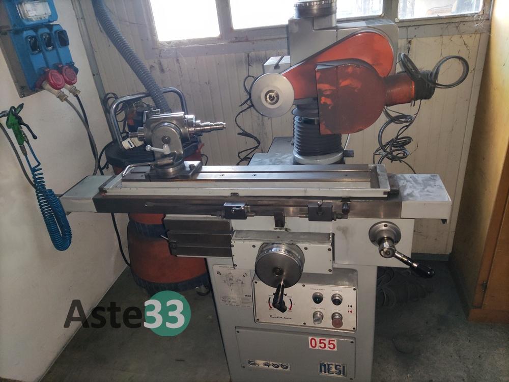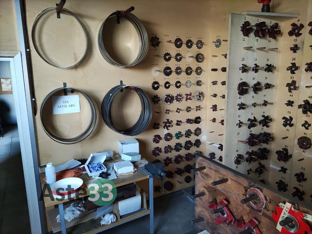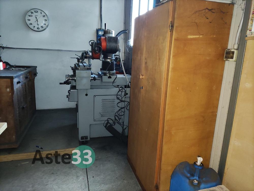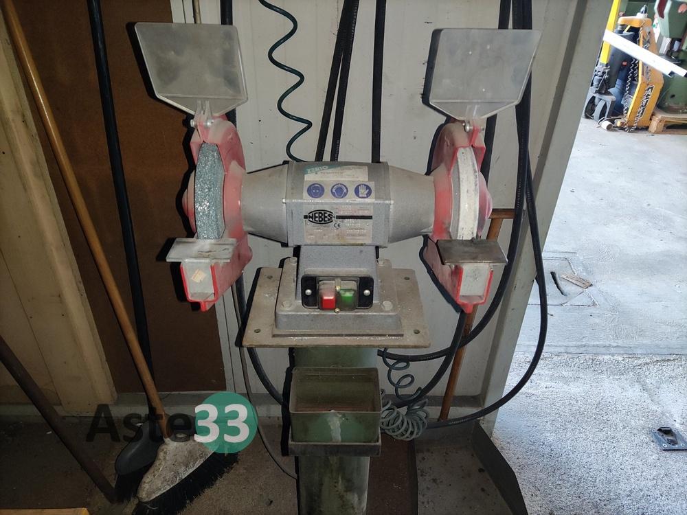 Troncatrice FABRIS, modello 315, n. seriale 266, anno 2004, con rulli per carico e scarico;Doppia mola smerigliatrice NEBES, lotto 1112, tipo S/200T, anno 2000, con base;Trapano a colonna FAMUP;Affilatrice NESI C.400;Aspiratore Grizzly;Mobiletto in legno;Banco da lavoro con morsa;Lapidello MVM LX6.3;Scaletta a 2 gradini;Varie frese e varie lame.