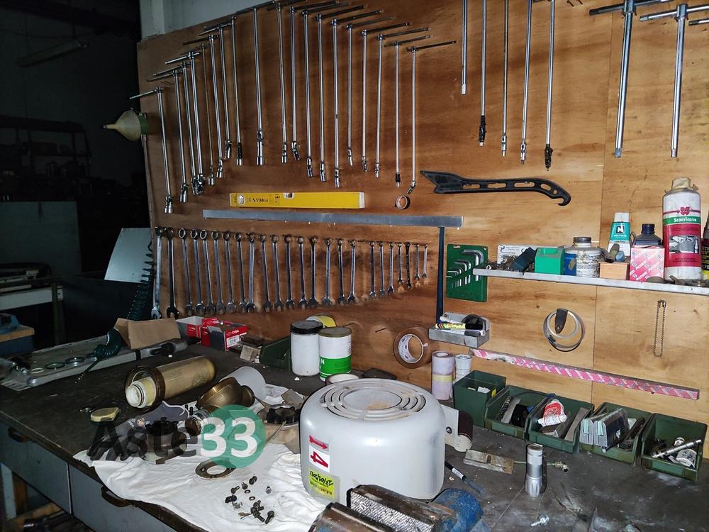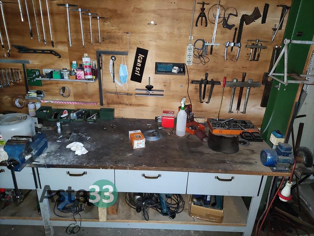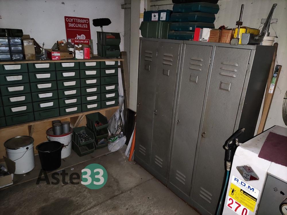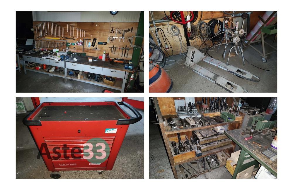 Banchi da lavoro, attrezzature per officina, carrello porta attrezzi, transpallet, scaffali leggeri, armadiature, saldatrice Cem ed elettroutensili