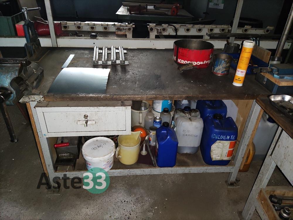 Banco da lavoro con struttura metallica con morsa, mola lucidatrice, 6 cassetti e vano sottostante;