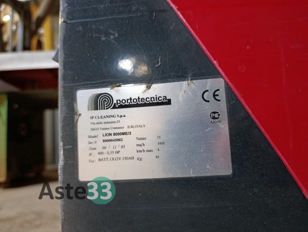 Spazzatrice PORTOTECNICA (IP CLEANING S.P.A.) modello LION 8000 ME/3, anno 2005, n. seriale 8000045002, peso 85kg.