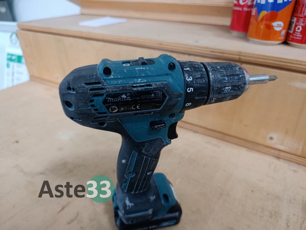 Reggettatrice a batteria FROMM ITALIANA, completa di carrello porta reggia;Bilancia FULGOR portata 600kg, n. 206285/37;Valigetta porta attrezzi USAG 646;Banco da lavoro con struttura metallica e piano in legno, dimensioni 310x85cm, con cassettiera a 3 cassetti;Avvitatore a batteria MAKITA DF333D.