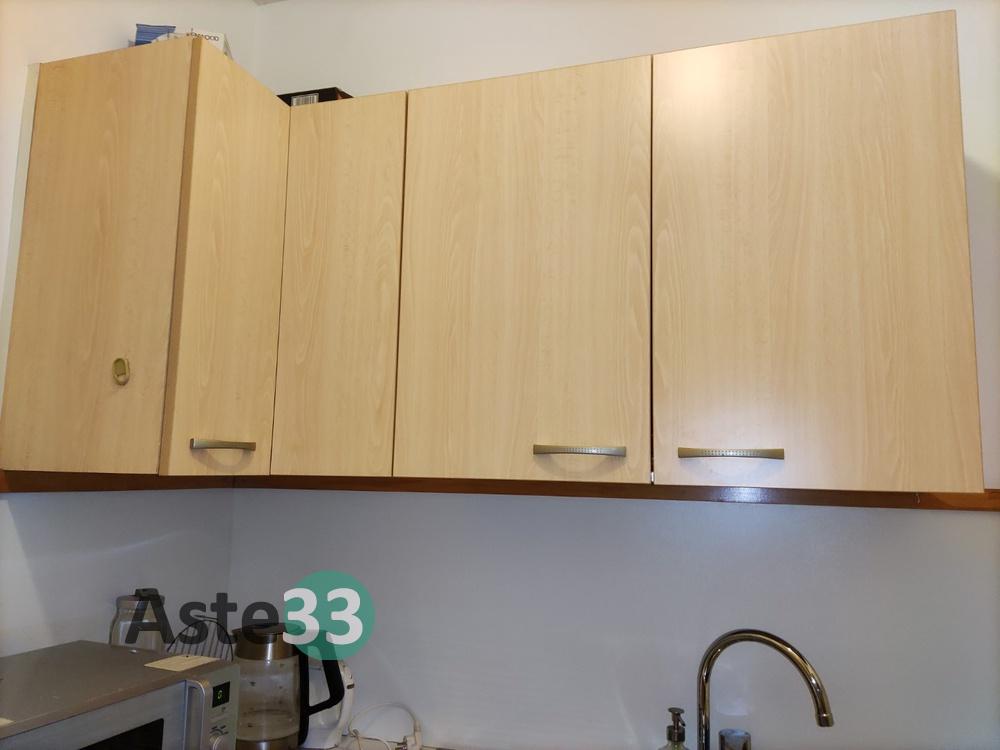 Mobile a parete composto da 9 antine inferiori, 5 ante superiori e mensole;