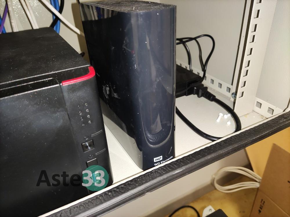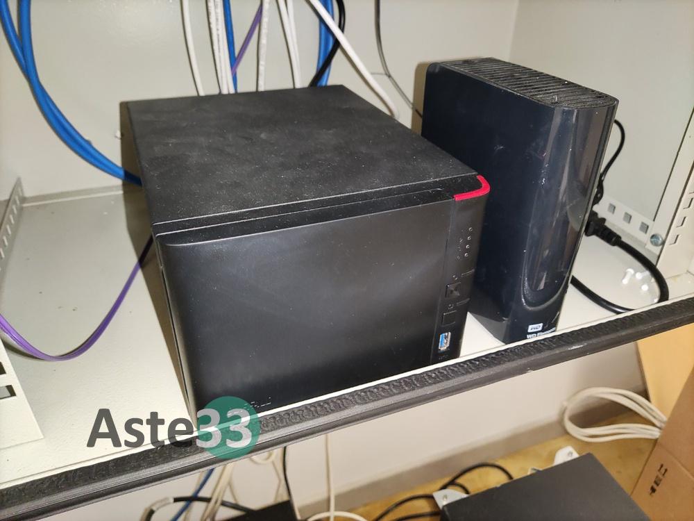 Mobiletto rack contenente LinkStation BUFFALO e WD Elements Desktop;