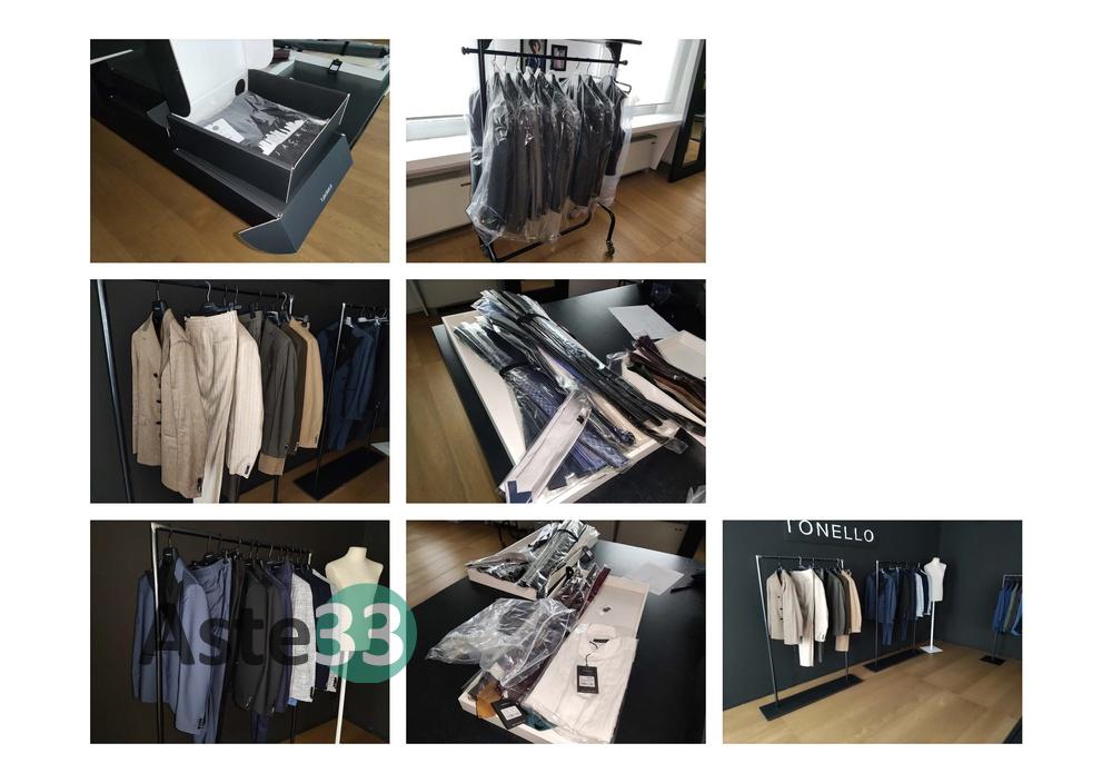 - Abbigliamento estivo/invernale: n. 69 giacche, n. 10 completi (giacca/pantalone), n. 13 pantaloni, n. 13 gilet, n. 3 maglie, n. 13 cappotti, n. 4 gonne, n. 1 pantaloncino, n. 3 top, n. 2 vestiti, n. 2 canotte;