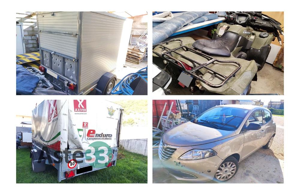 Autovettura Lancia Ypsilon, quadriciclo Valenti Racing LT 700A A, n. 2 rimorchi, vari componenti metallici per allestimenti, informatica ed abbigliamento