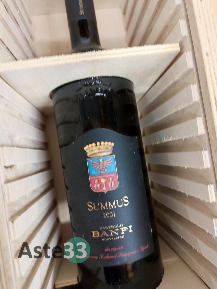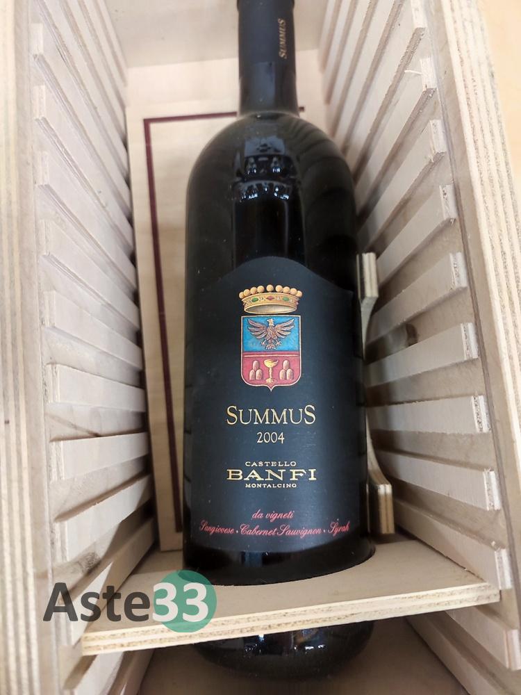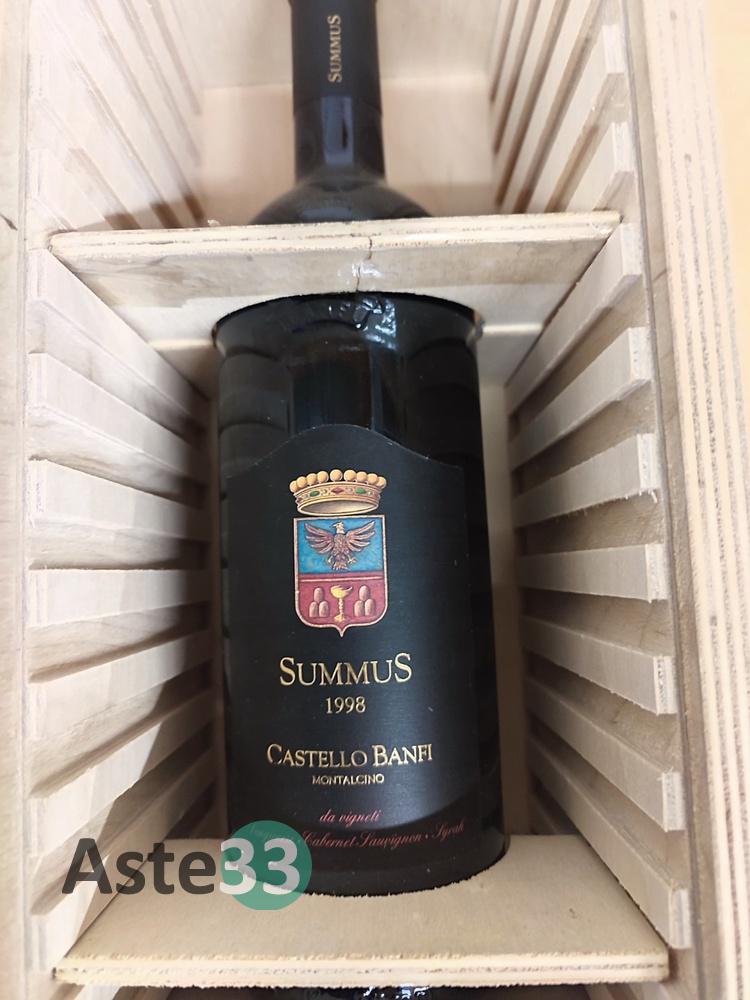 N. 3 bottiglie di: Castello Banfi Summus Montalcino 1998-2001-2004 750ml, con cassa in legno;