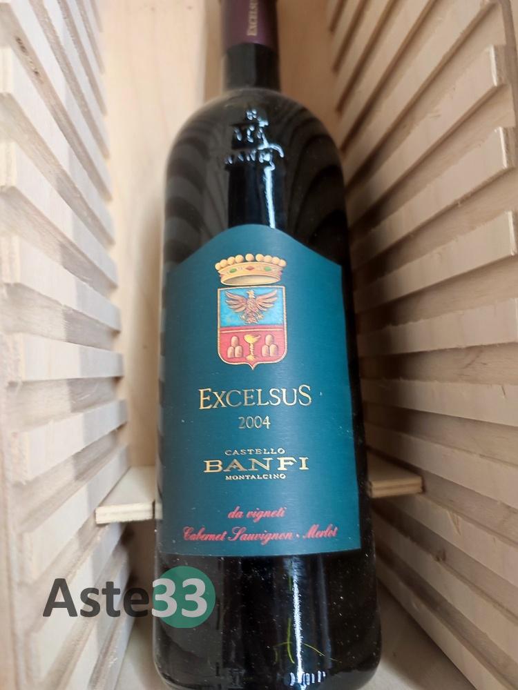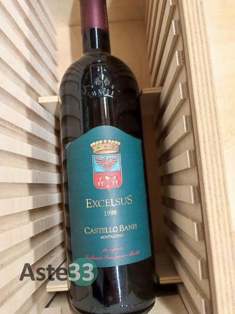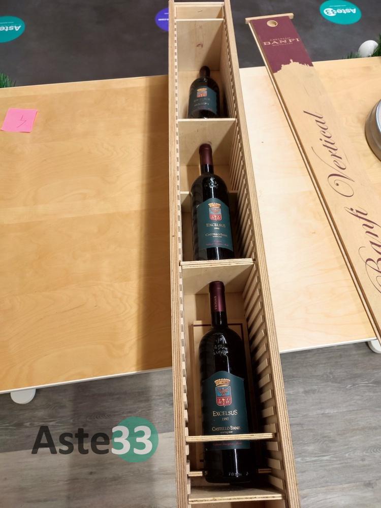 N. 3 bottiglie di: Castello Banfi Excelsus Montalcino 1997-1998-2004 750ml, con cassa in legno;