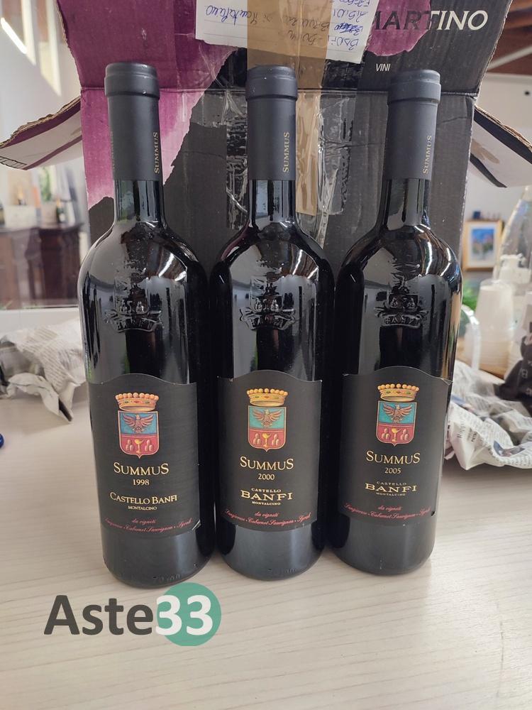 N. 3 bottiglie di: Summus Castello Banfi Montalcino 1998-2000-2005 750ml;