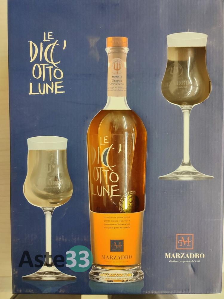 Grappa stravecchia Diciotto Lune con due bicchieri in confezione 50cl;