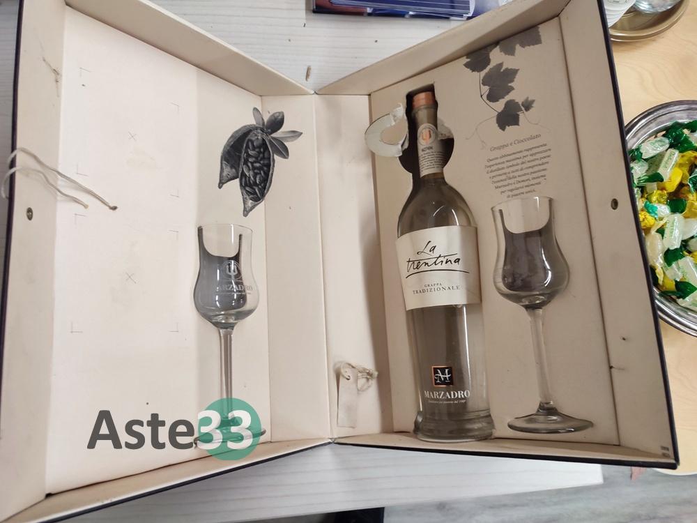 Bottiglia di: Grappa tradizionale La Trentina Marzadro con due bicchieri in confezione 0,50l;