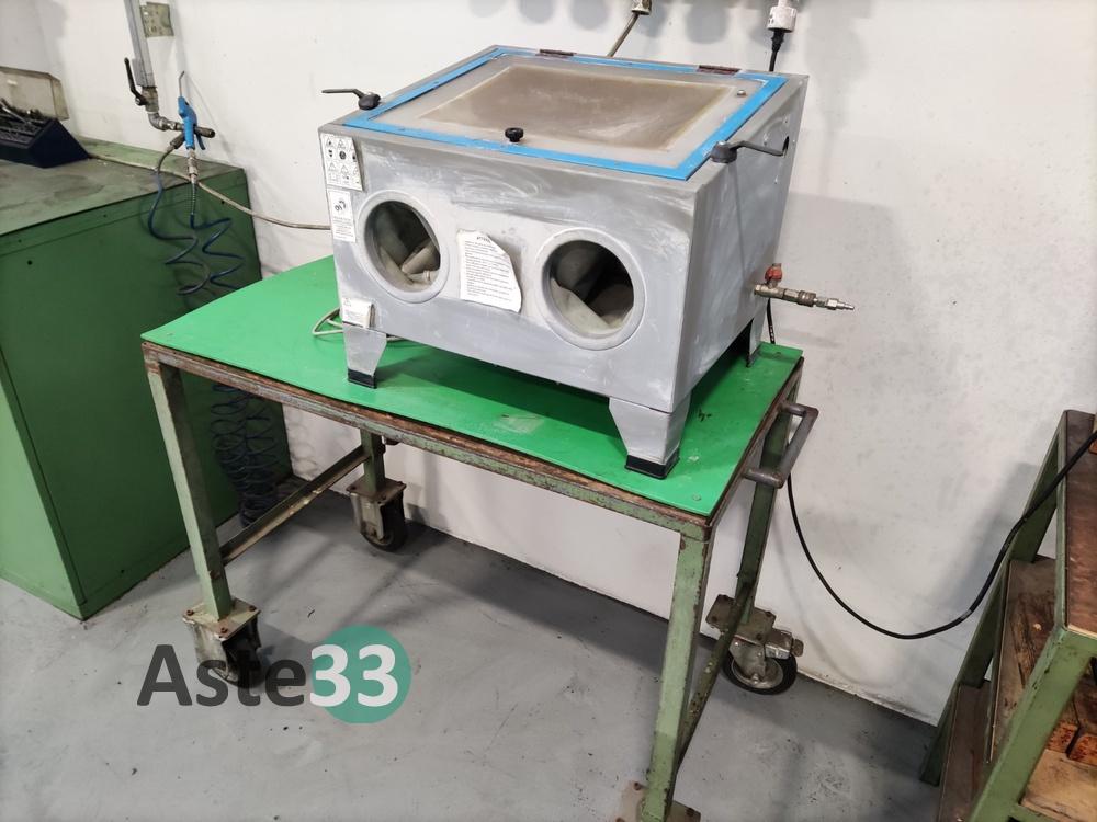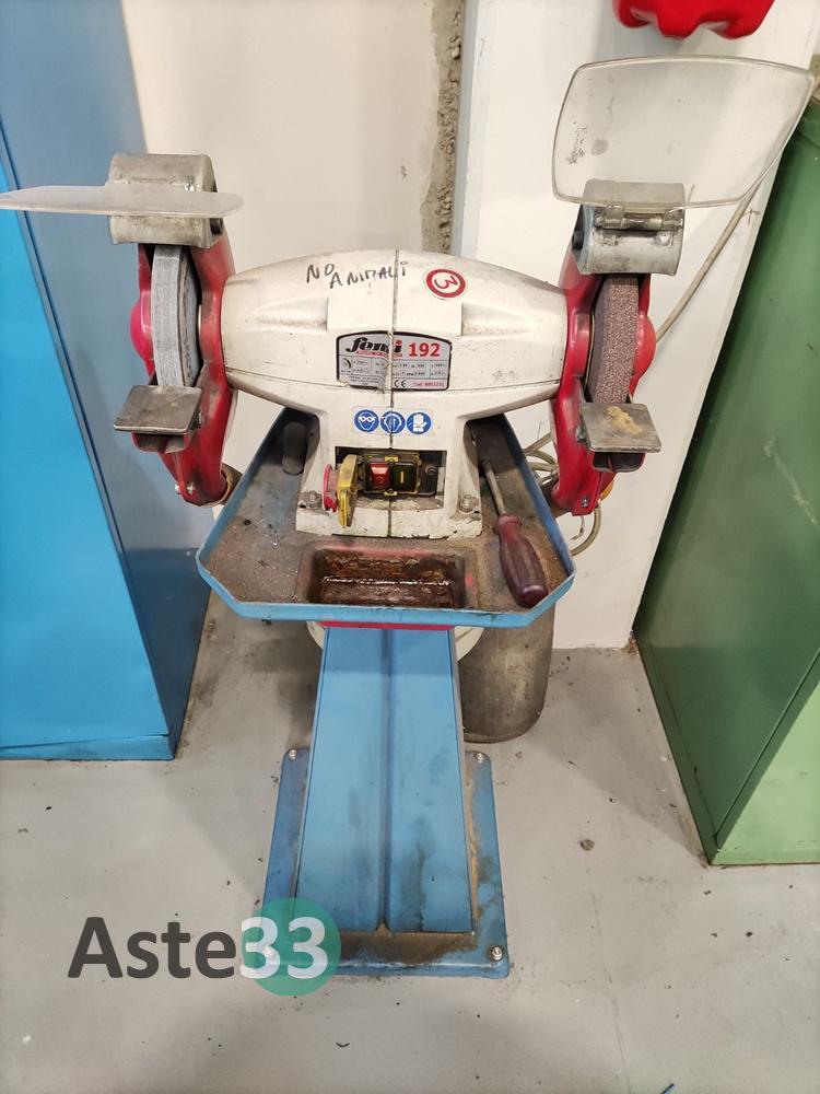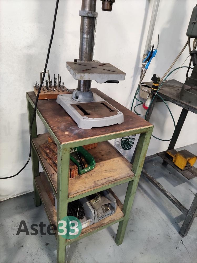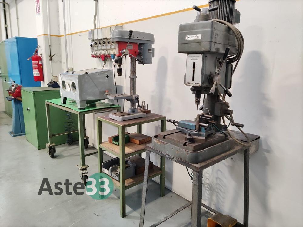 Trapano a colonna “IM” Lonigo, mod. IMV118, N.42220, con banco di supporto;Trapano a colonna EINHELL, mod. SB 701/1, anno 2008, seriale numero 01/I-3 238, con relativo banco di supporto;Sabbiatrice con banco carrellato;Doppia mola FEMI 192, cod. 8003231, con basamento.