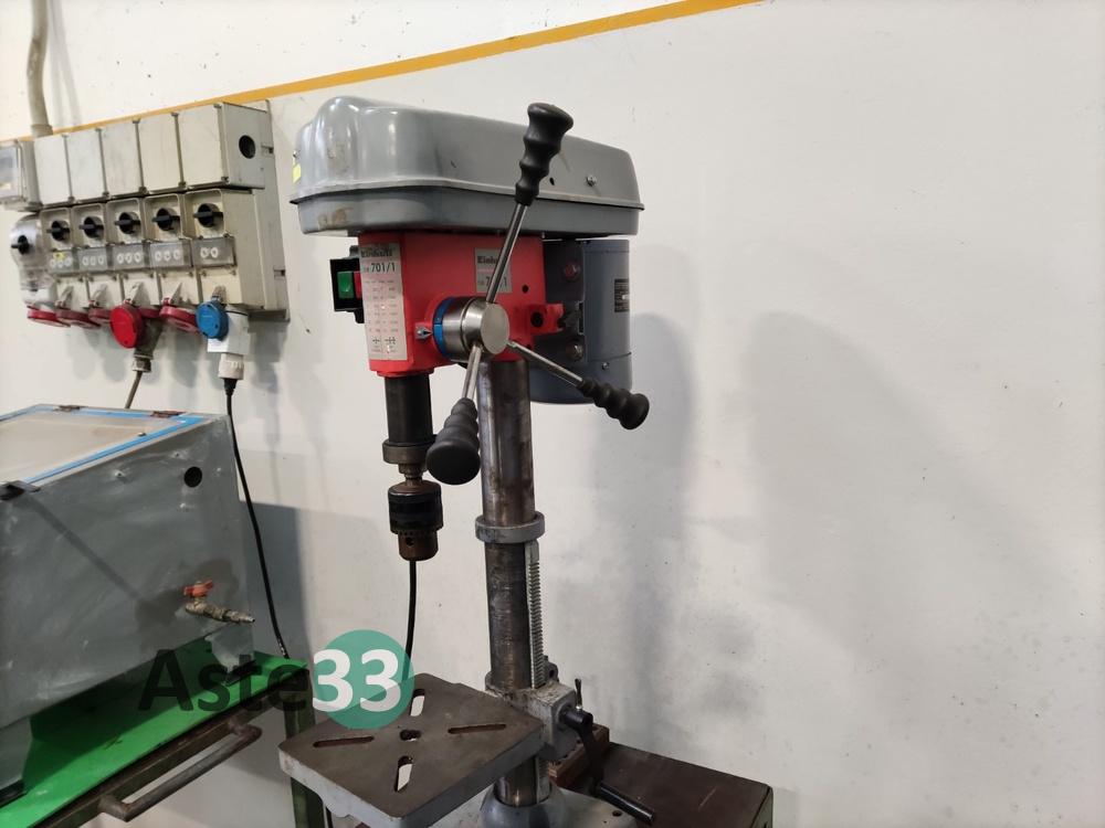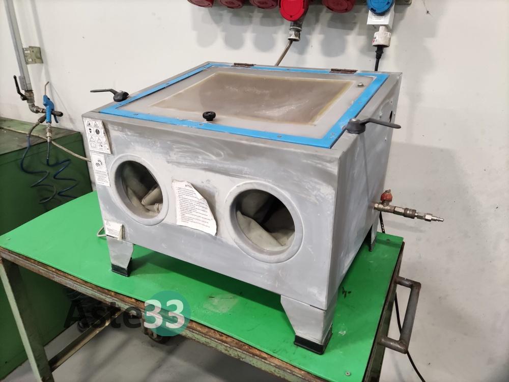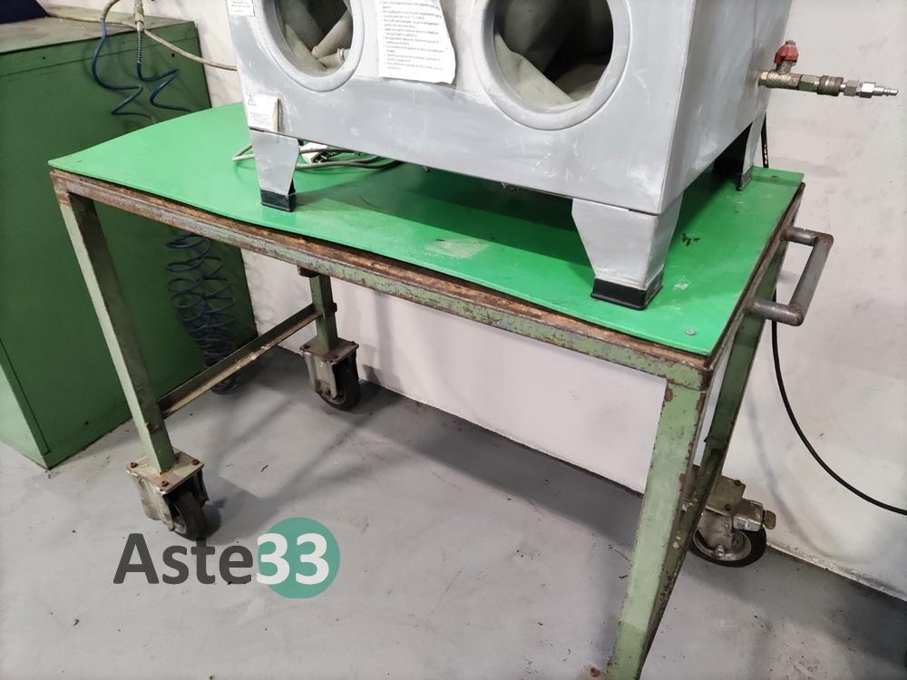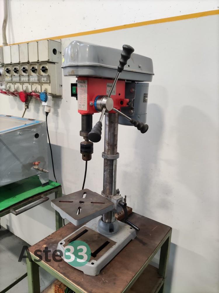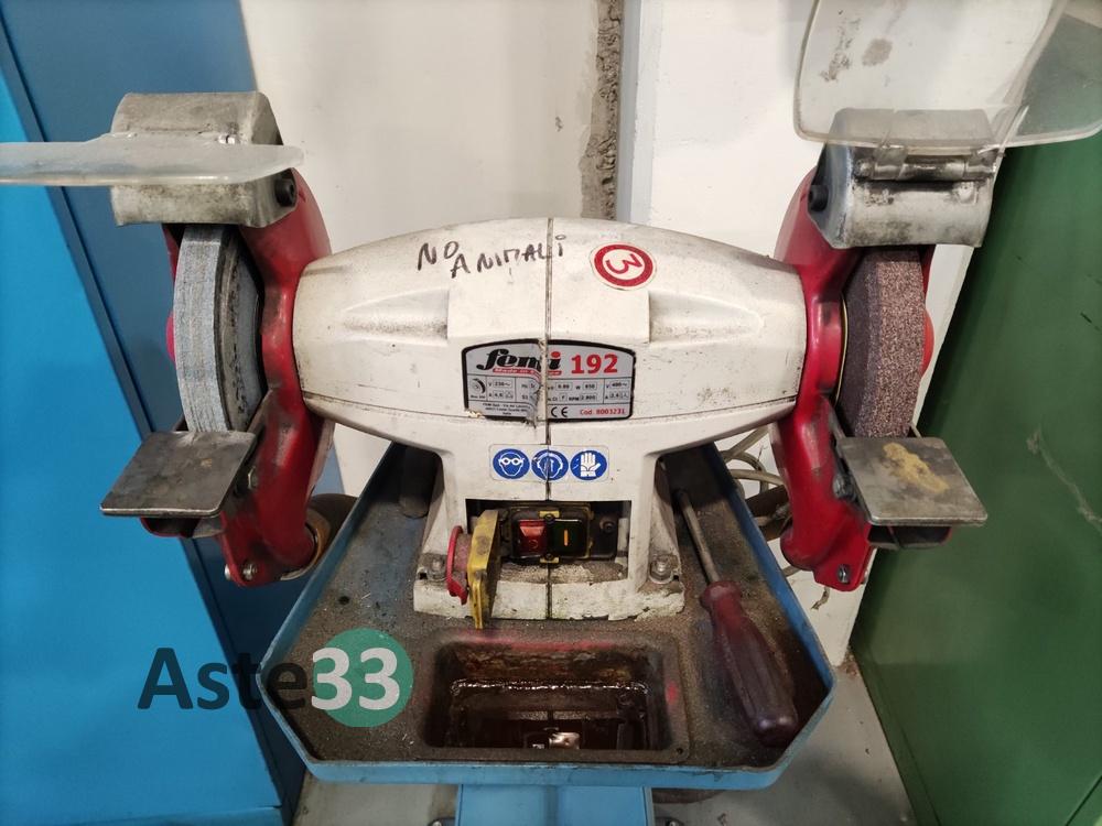 Trapano a colonna “IM” Lonigo, mod. IMV118, N.42220, con banco di supporto;Trapano a colonna EINHELL, mod. SB 701/1, anno 2008, seriale numero 01/I-3 238, con relativo banco di supporto;Sabbiatrice con banco carrellato;Doppia mola FEMI 192, cod. 8003231, con basamento.