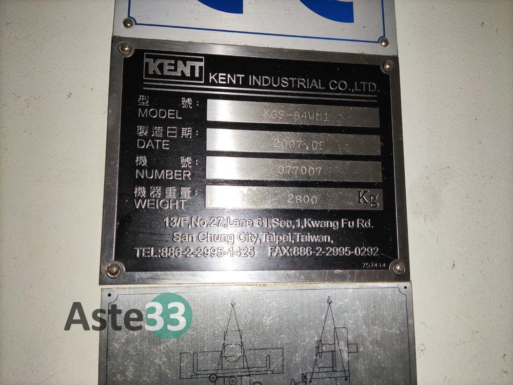 Rettifica KENT mod.KGS-84 WM1, anno 2007, seriale n.077007 con sistema di separazione magnetico, quadro comandi;Armadietto metallico basso, a 2 ante contenente accessori per rettifica;Disco per rettifica.