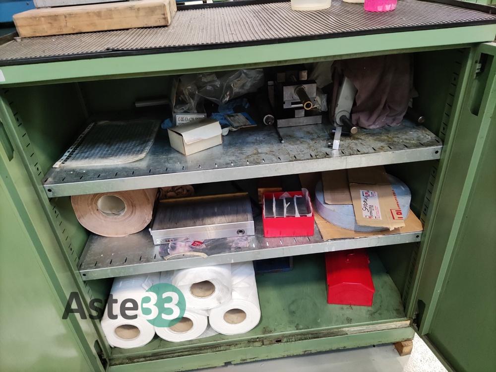 Armadietto metallico basso, a 2 ante contenente accessori per rettifica;