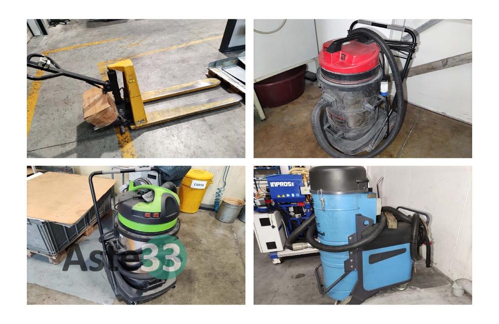 Aspiratore IP Cleaning, IPC GS 3/78 W&D;Transpallet manuale con alzata elettrica (danneggiato), PRAMAC LIFTER spa, mod. HL10E L540, sn. 2001HH001054, portata 1000kg;Aspiratore industriale COYNCO D1155 AUT;Aspiratore industriale Keval, mod. K2, Version 000, S.N.0900173, anno 2009;Aspirapolvere Portotecnica, mod. 1640, type WDL2.
