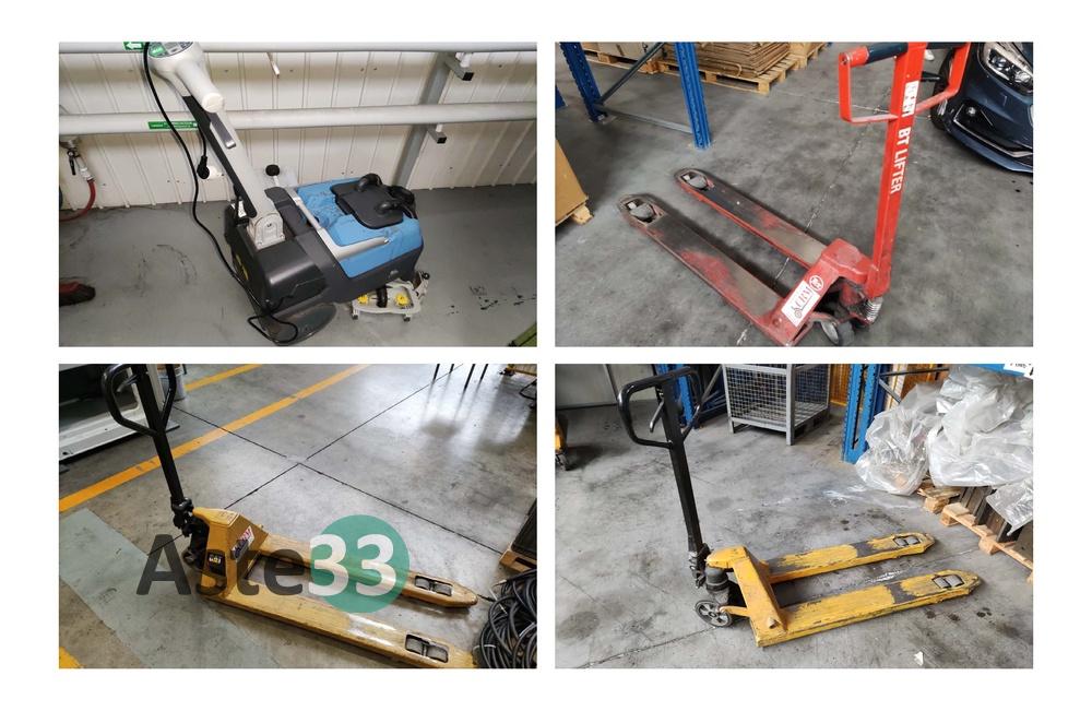 Transpallet manuale marca Lifter, anno 2018, portata 2500kg, serial HLI 0547813;Lavasciuga per pavimenti FIMAP GL PRO, sn. 222003209, anno 2022 a batteria;Transpallet manuale BT Products AB, n. BTL 2000/11.Transpallet manuale.