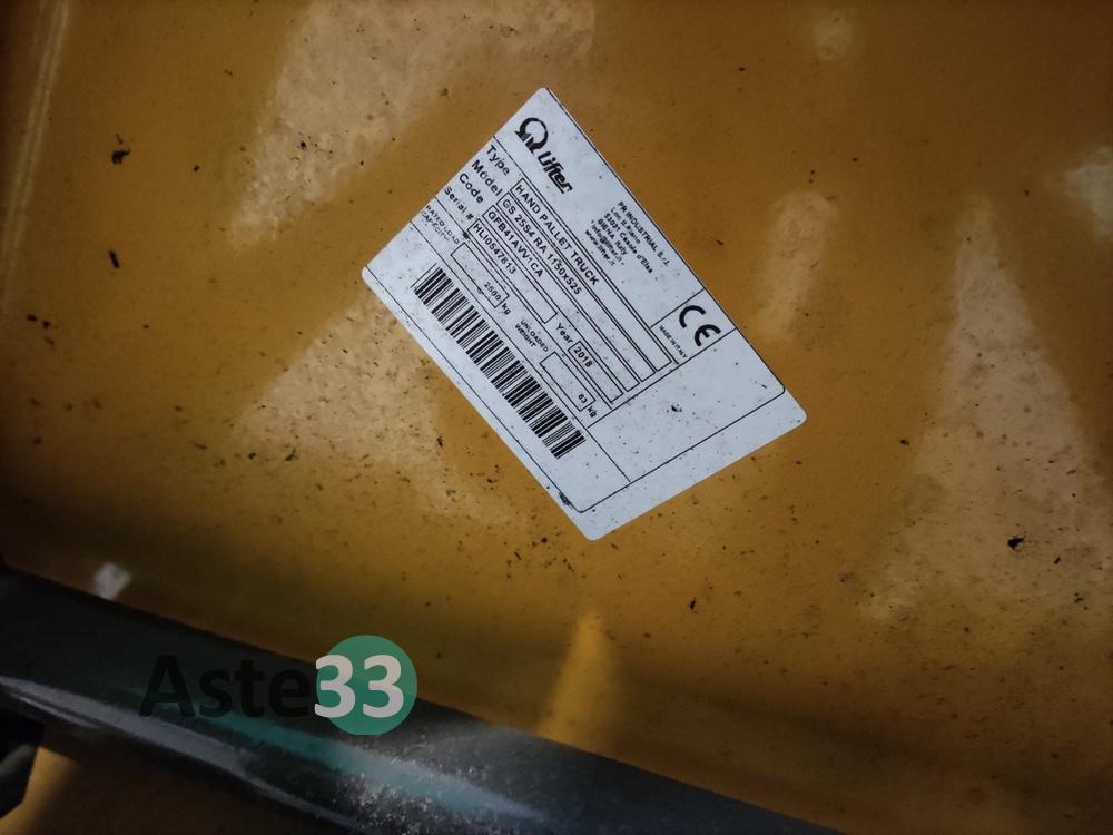 Transpallet manuale marca Lifter, anno 2018, portata 2500kg, serial HLI 0547813;