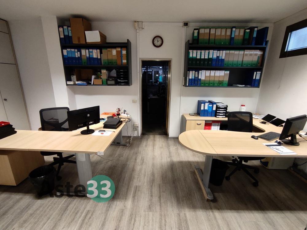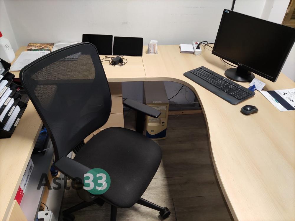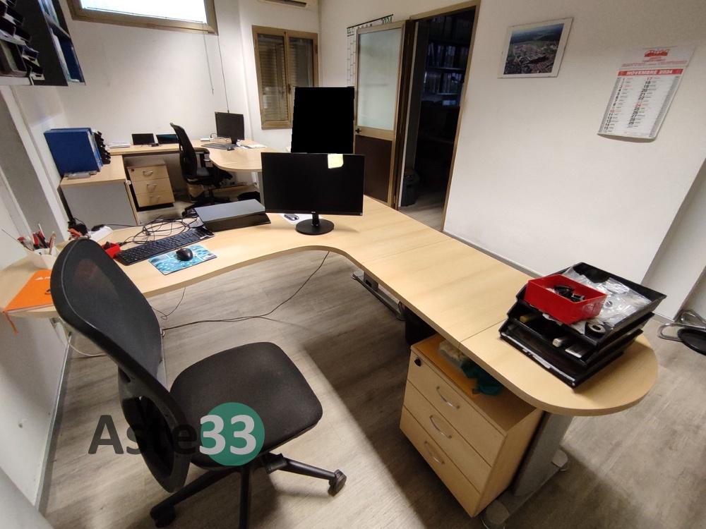 N. 2 scrivanie con penisola, armadio a parete, mobilia e poltroncine