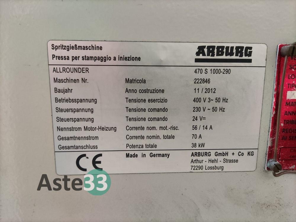 Pressa per stampaggio a iniezione ARBURG, modello 470 S1000-290, matricola 222846, anno 2012;