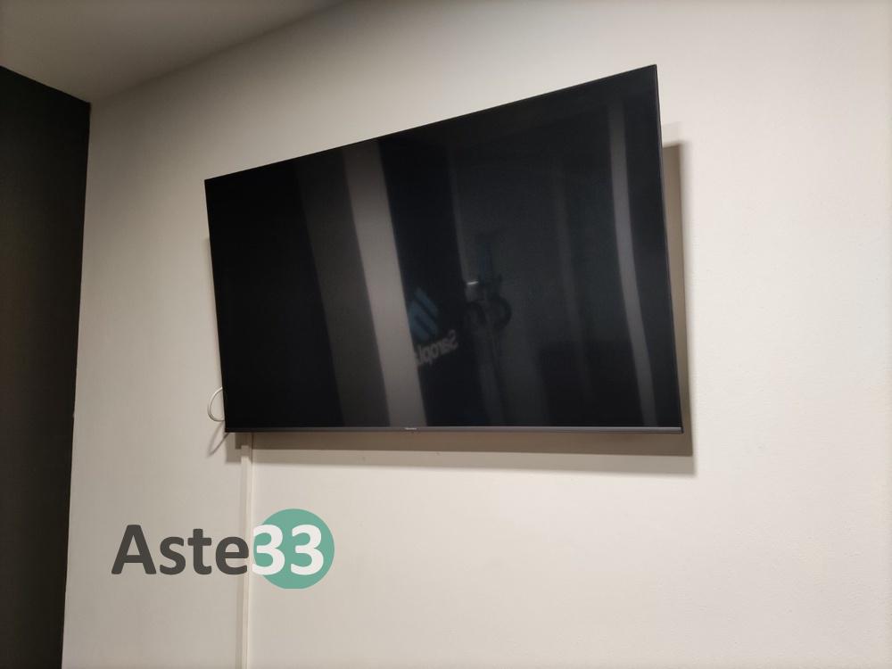 Tavolo rotondo con 7 sedie, tv Hisense e appendiabiti