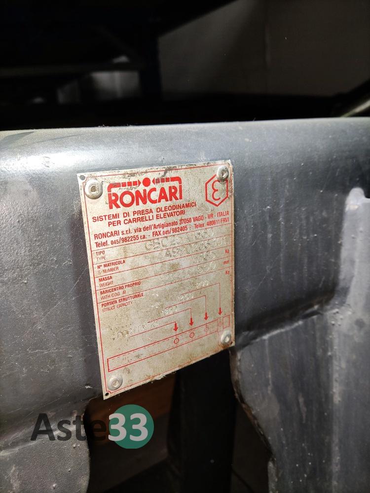 Sistema di presa per carrelli elevatori, marca Roncari, tipo GBC 25A1360, matricola A990236301, massa 165 kg.