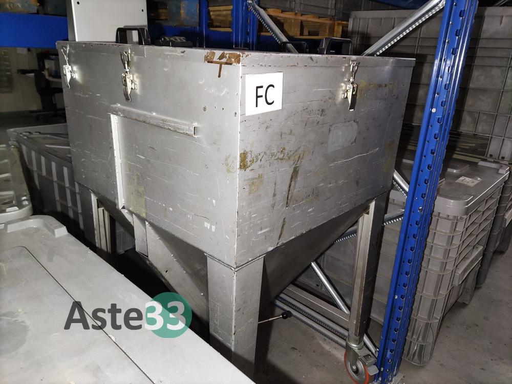 N. 8 tramogge, forno industriale, saldatrice, carrelli e tubazioni, essiccatore dipre