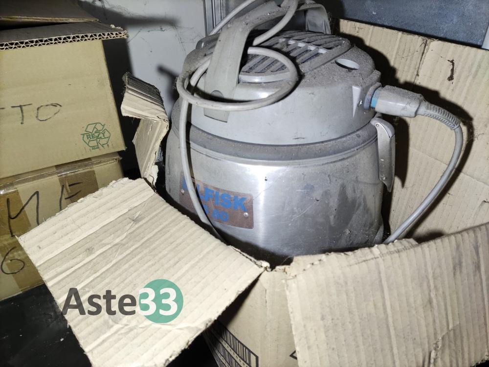 N. 2 armadi FAMI, metallici, a 2 ante, dimensioni di circa cm. 102x55x200 h, contenenti materiale per pulizia, contenitori in plastica per minuteria e 4 valigette per minuteria;