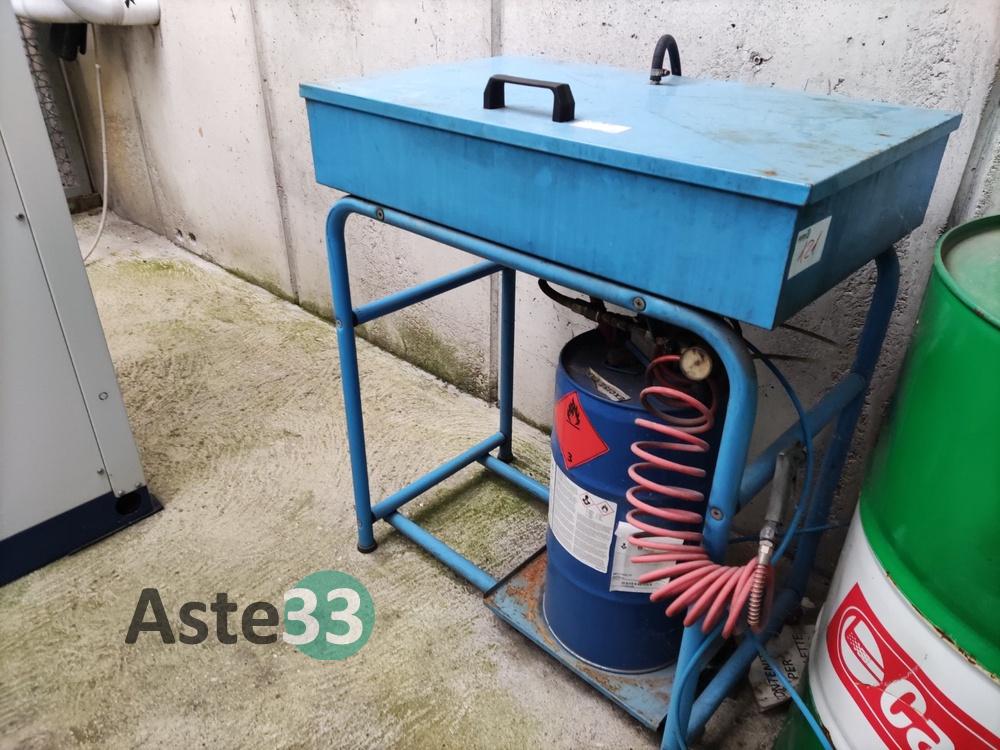 Vasca di lavaggio pneumatica SI.MEC.C, mod. VIT 5080;Pompa CSF Inox;Doppia mola Tommasi & Bonetti AT 05;Scaffale metallico porta pallet a 2 colonne 280x100x355 h.;Aspiratore Ecosistemi Srl, mod. FC1 PA, matricola 037 03, anno 2003 con cabina coibentata;Box in plastica.